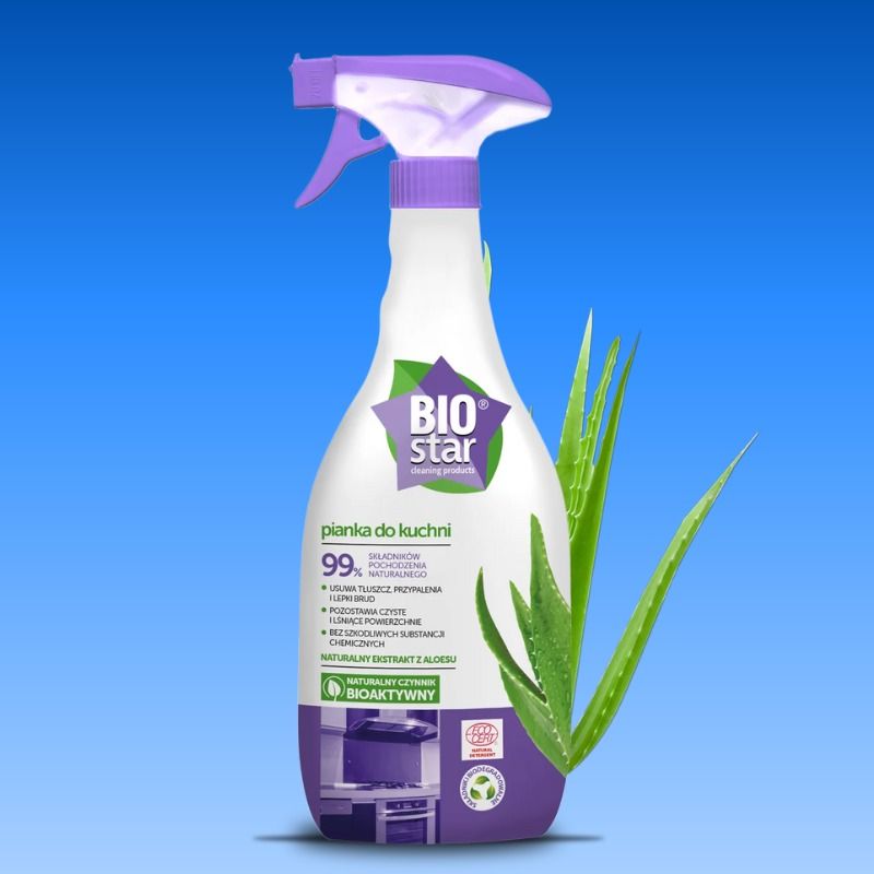 Ekologická čistiaca pena Biostar pozostáva z 99 % prírodných aktívnych zložiek vrátane povrchovo aktívnych látok rastlinného pôvodu a Bio-Active probiotík. Bez formaldehydu, mikroplastov, boritanu či EDTA. Ideálne na mastnotu, pripáleniny a lepkavé zvyšky na kuchynských povrchoch.