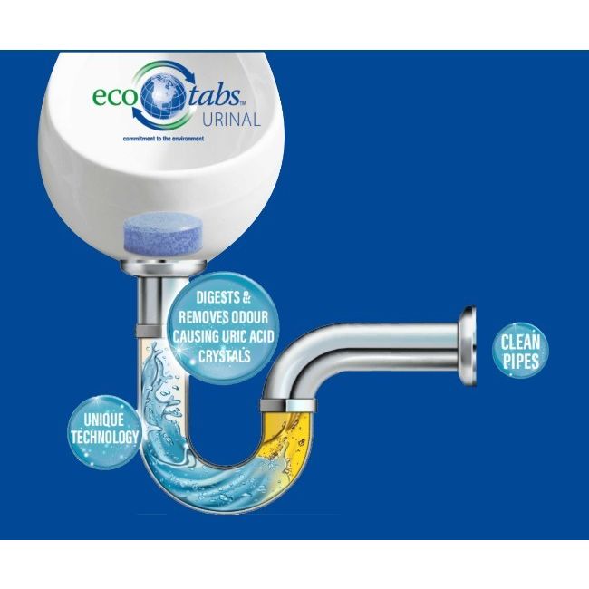 Ecotabs urinal shock prášok je prírodný produkt, ktorý je určený na údržbu potrubia pisoárov. Je to bezkonkurenčný produkt, ktorý odstraňuje pôvod problému, ktorým je kyselina močová.