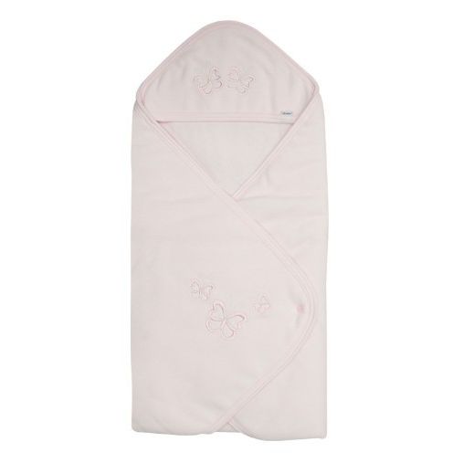 2023 deka s kapucňou, 80 × 80 cm – vrchná vrstva z 100 % polyesteru a podšívka z 100 % bavlny. Dostupná v jemných odtieňoch bielej, smotanovej, svetlomodrej a ružovej – mäkká, priedušná a ideálna na prikrytie alebo zábal bábätka.