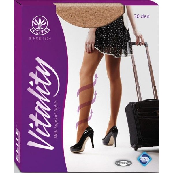 NIKOLA podporné pančuchové nohavice 30 DEN s odstupňovaným sťahom lýtok na podporu obehu. Polyamid-elastan zloženie (86 % / 14 %), antibakteriálna úprava Sanitized, zosilnený sed, klín a plochý šev. Dostupné veľkosti 158/100 až 176/132 v telovej farbe.