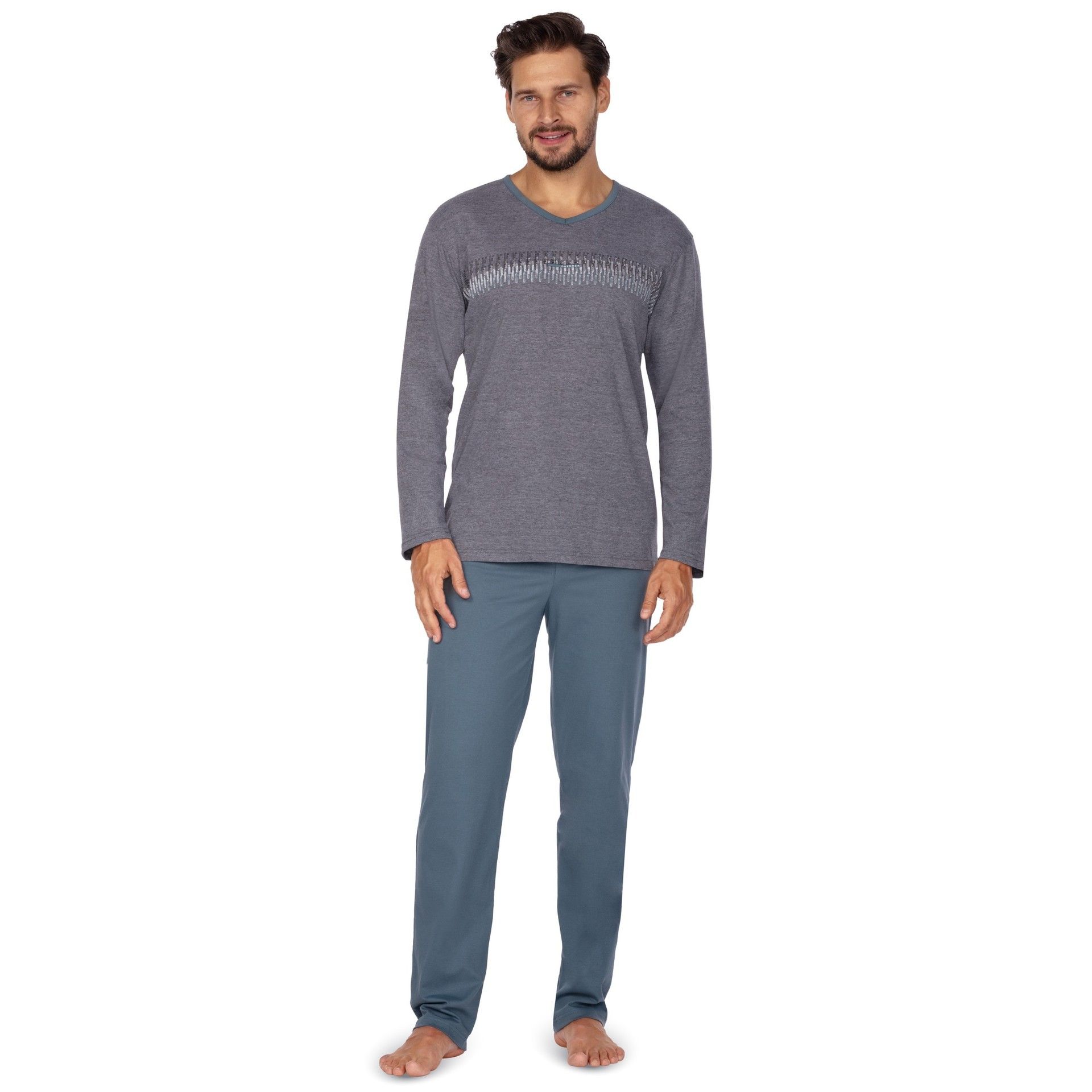 Regina 449 pánske pyžamo z 100 % bavlny. Pohodlný voľný strih a potlač na prednej strane. Veľkosti: M, L, XL, XXL, 3 XL.